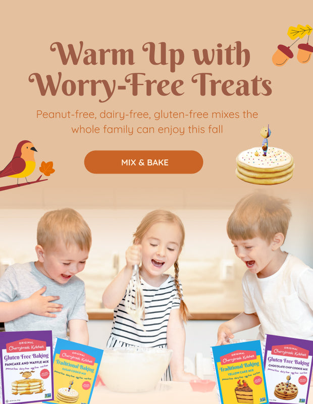 We created Cherrybrook Kitchen with the parents of kids with allergies in mind, because that’s what we are! Seeing our children struggling to find safe-to-eat desserts and baked goods struck a chord in our hearts. Our goal was to create a fool-proof, worry-free baking mix that was safe to eat for all, and equally delicious. Family baking days are like medicine for the soul, leading to beautiful life-long memories and yummy treats. Everyone should have a chance to partake, no matter what allergies they may have!